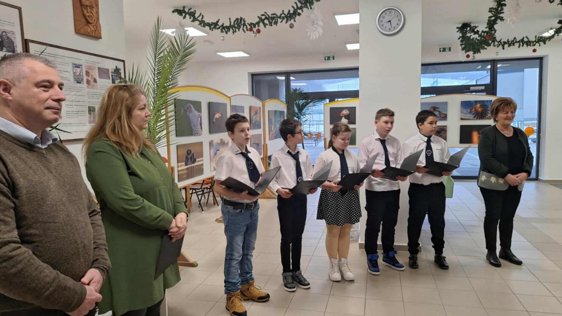 Az idei emléknapon Kreiner Roland, a Zalaerdő Zrt. termelési igazgatójának gyönyörű fotóiból nyílt kiállítás az aulában. Hopp Marianna tanárnő köszöntője és a tanulók műsora után Bedő Helén igazgató méltatta a természetfotós erdőmérnök alkotásait, aki puska mellett az őseinkhez legközelebb álló módon, íjjal is vadászott – de ma már főleg fényképezőgépre cserélte a fegyvert. Kedvelt témái a madarak. Tulajdonképpen itt is vadászik, csak épp egy jó képre.