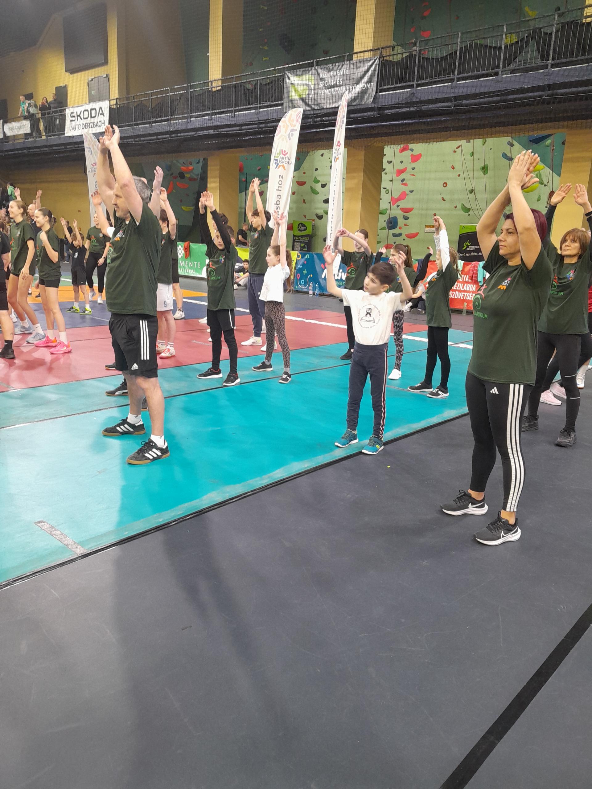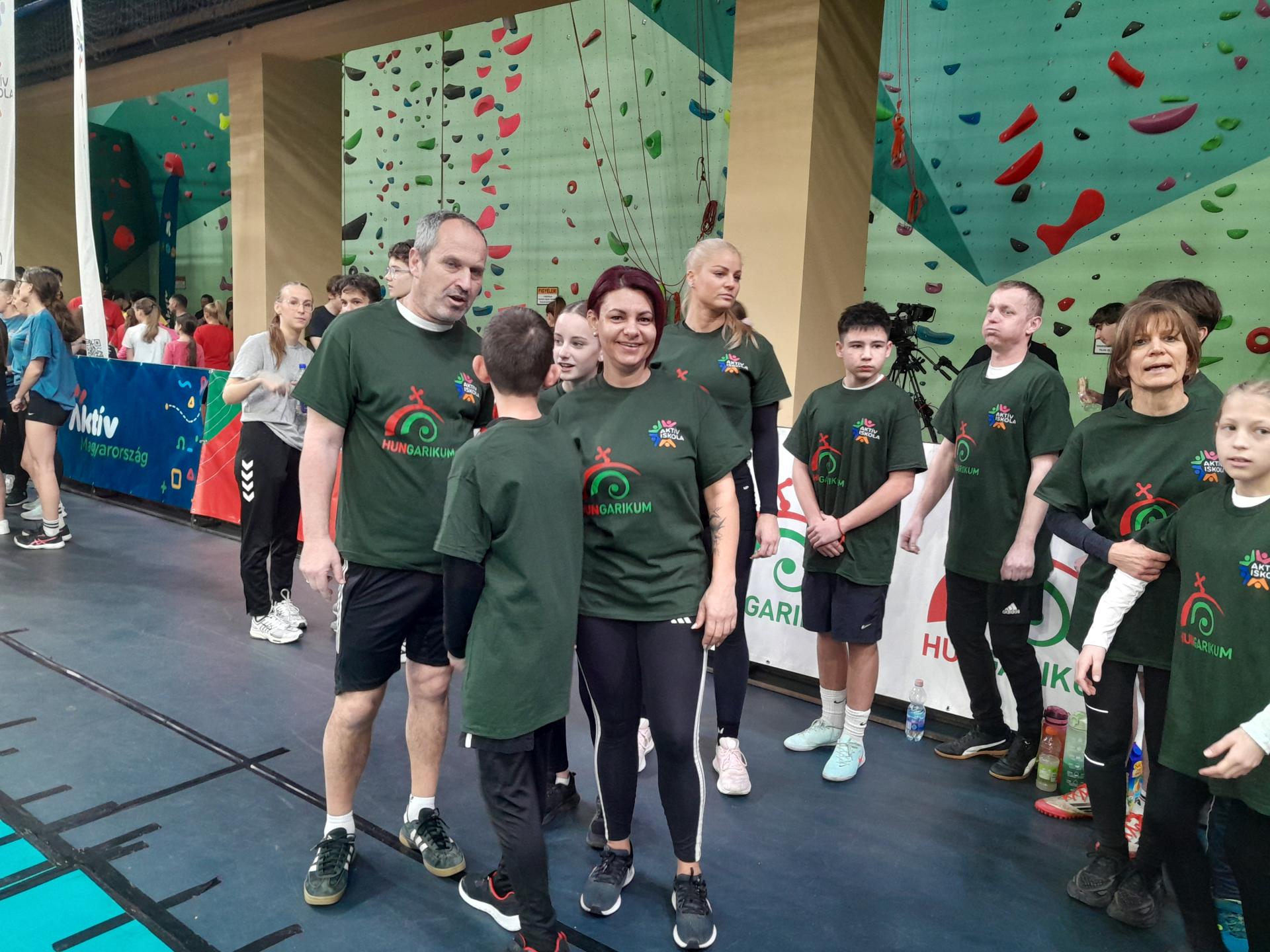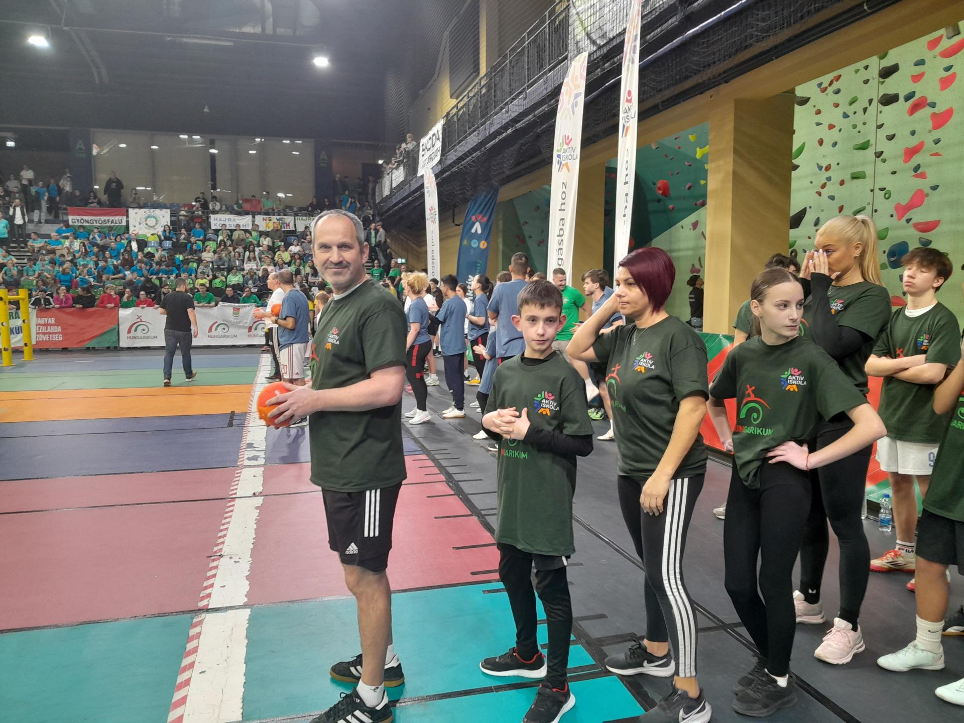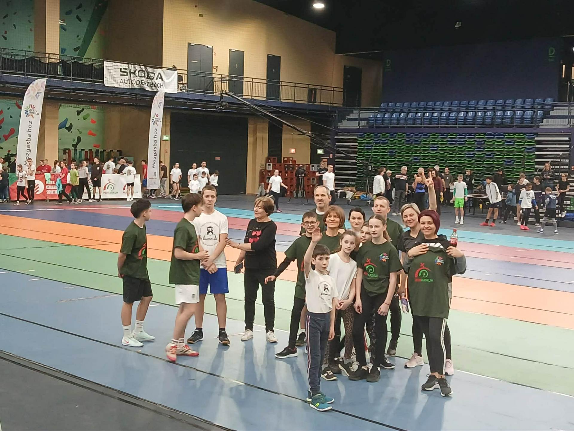 Sportcsarnokban. A csapat igazi közösségi összefogással jött létre: alsós és felsős tanulók,